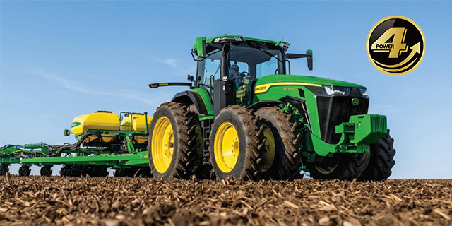 8R拖拉機配備符合國四排放標準的約翰迪爾 9.0升高壓共軌發動機,