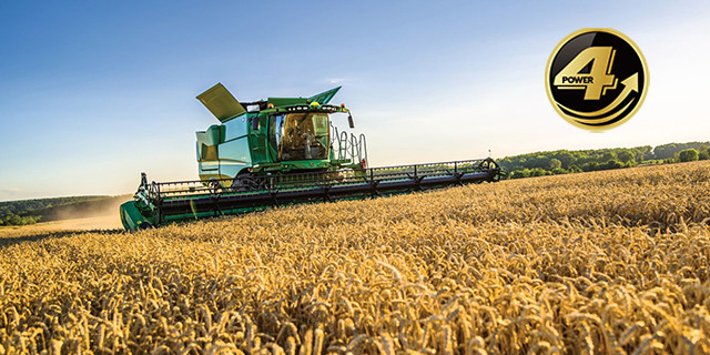 S700 系列自走式聯合收割機配備進口約翰迪爾 6090 發動機,動力強勁的同時滿足國家非道路四階段的環保排放要求。S700 系列收割機使用 TriStreamTM?三作物流單縱軸流脫粒分離系統,適用于玉米籽粒、大豆、小麥等多作物收獲,配合逐級放大的螺旋上蓋板在一拉一放間輕柔脫粒,節省油耗。5.2 平方米大清選面積,500mm 直徑的清選風扇提供的風量最大可達 740 立方米 / 分鐘,提供更多的空氣流量,清選效果好。糧箱容積高達10600 升,作業更高效省時。糧箱蓋板開合在駕駛室內通過 4600 顯示器操作,方便快捷。卸糧速度最高可達 120 升 / 秒,收獲作業更高效。全新推出的 S770 機型,額定功率高達397 馬力,標配 ProDriveTM?變速箱,最高行駛速度可達 40km/h*, 同時配備差速鎖配置,提升復雜地況的通過性。ProDriveTM?變速箱與發動機轉速管理系統結合可提升道路運輸效率并節省燃油消耗。除配備 S760 固有的 ICA 交互式收割機調整功能外,S770 還新增了ATA 主動坡地調整功能,自動化調整幫您減少雜余量,降低損失并提升籽粒潔凈度。S700 系列收割機讓收獲作業如此輕松簡單!